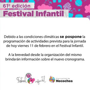 La organización de este tradicional evento ahora esta analizando la situación y a la brevedad informará para cuándo se reprograma las actividades que estaban pensadas para hoy.