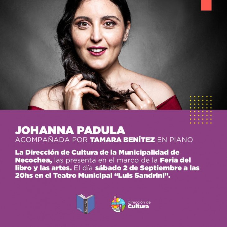 El próximo sábado se presentará en el Teatro Municipal “Luis Sandrini”, en calle 54 Nº 3080, la cantante lírica Johanna Padula, acompañada en el piano por Tamara Benítez.