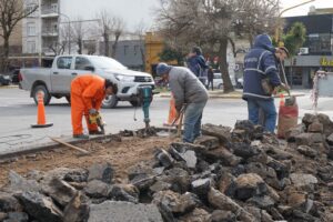 En lo que respecta a las tareas con hormigón, “estuvimos haciendo la calle 60 entre 71 y 73, donde reparamos varias losas en las que se acumulaba el agua”, continuó, ampliando al respecto que “los vecinos iniciaron un expediente por una planta que había levantado el pavimento, entonces procedimos a cortar las raíces, saneamos el sector y ya estamos hormigonando las losas”; mismo procedimiento que se ejecuta en la calle 46, a metros de la Avenida 59.