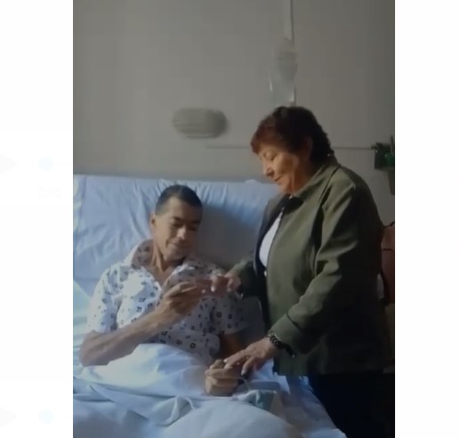Un emotivo momento se vivió hoy en una de las habitaciones del nosocomio local donde se realizó el casamiento de Roberto Gutiérrez, que se encuentra allí internado, con su pareja de hace 7 años, Lidia López.