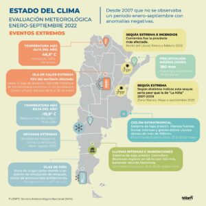 El verano 2022 registró “olas de calor extremas y sin precedentes”, en la Antártida “temperaturas más altas a lo normal”, y en el otoño e invierno las condiciones fueron más frías que lo habitual, según el reporte preliminar publicado hoy por el Servicio Meteorológico Nacional (SMN), en el marco de la 27° Conferencia de las Naciones Unidas sobre el Cambio Climático de 2022 (COP27).