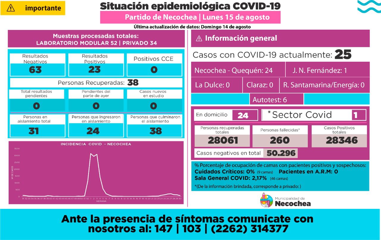 Los casos activos corresponden: 24 a Necochea y Quequén y 1 a Fernández.