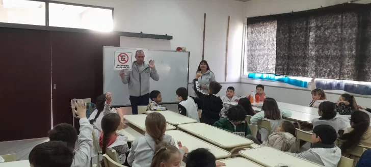 Como se viene realizando de forma constante en los colegios y jardines de infantes, fueron los agentes municipales Gustavo Vómero y Andrea Boero, quienes forman parte del Observatorio que está a cargo de Mariela Cellerino, que estuvieron al frente de estas jornadas que se caracterizan por su formato interactivo y dinámico, con circuitos viales adaptados para los más pequeños y actividades prácticas que invitan a reflexionar sobre la importancia de la seguridad en calles y rutas.