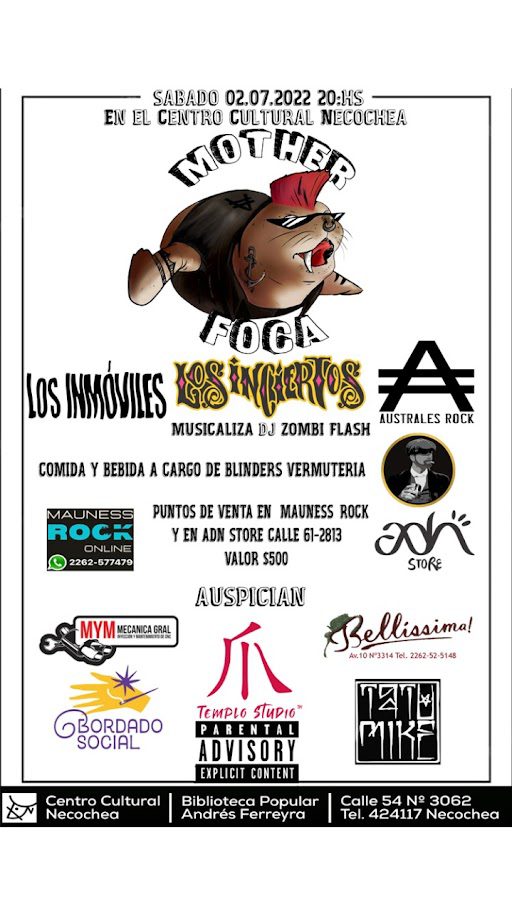 La primera edición del “Mother Foca” se realizará este sábado 2 de julio en el Centro Cultural Necochea Biblioteca Popular Andrés Ferreyra (CCN/BPAF).