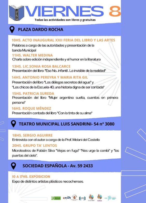 Además, durante los tres días de la Feria, la plaza Dardo Rocha se vestirá de colores para disfrutar de distintos espectáculos, juegos, y de una gran y variada oferta editorial.