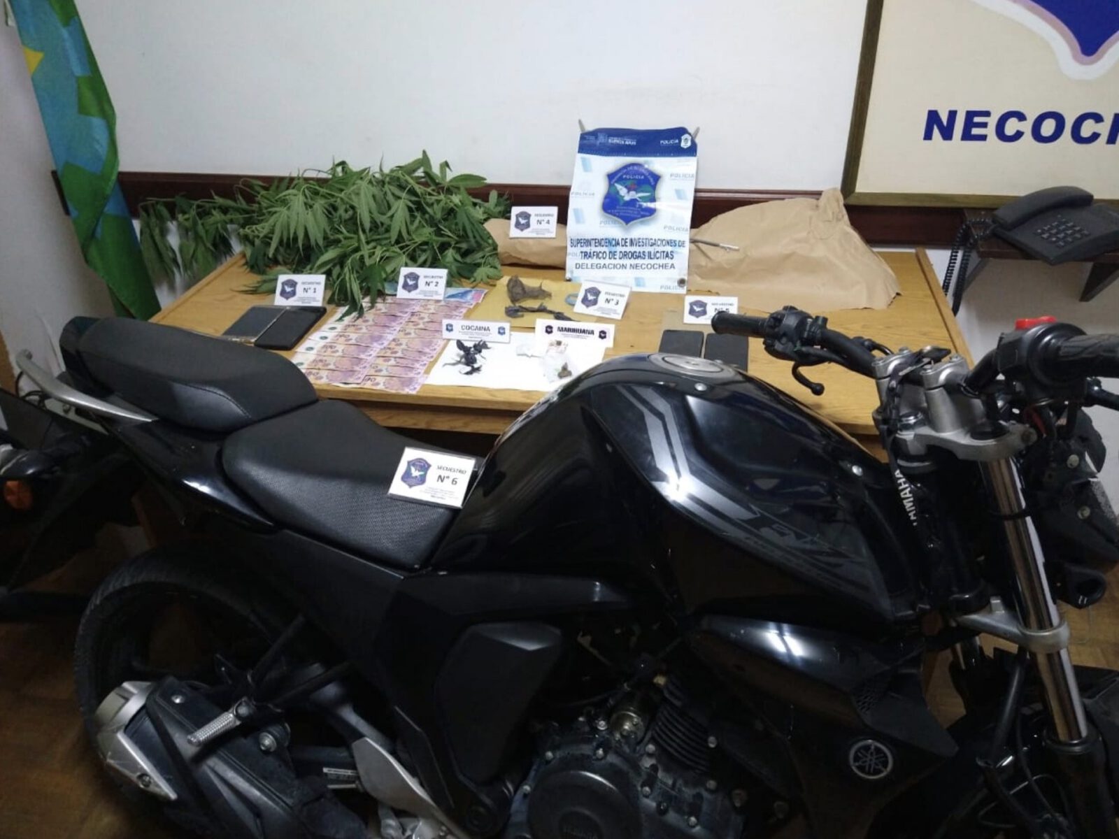 La Delegación Departamental de Investigaciones del Tráfico de Drogas Ilícitas Necochea, llevó adelante un allanamiento positivo donde pudieron incautar drogas y una moto robada.