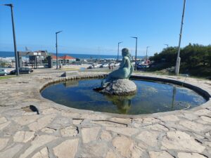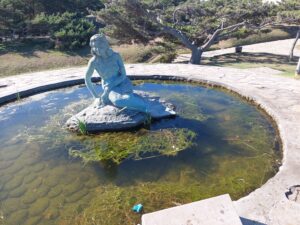 Una de ellas, “La dama del Mar”, aparece entre los pasillos de los jardines del Complejo Casino, en el medio de una fuente que ahora ha quedado en el olvido, custodiando el atlántico desde una lomada.