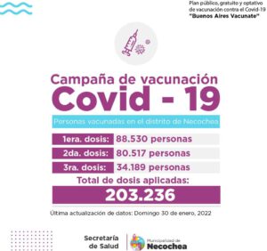 Con respecto a la campaña de vacunación hasta el día de hoy aplicaron 203. 236 dosis en el distrito de necochea.