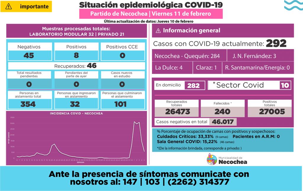A raíz de esto ha bajado considerablemente la cantidad de casos activos y actualmente en el distrito hay 292 casos activos.