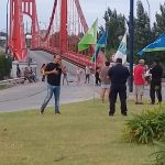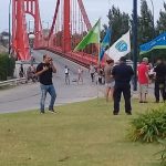 El puente colgante permanece cortado de ambas márgenes, desde las 18 horas aproximadamente, cuando el padre y el tío de dos menores que se encuentran en un hogar por una medida de abrigo, subieron para exigir que la justicia se los devuelva.