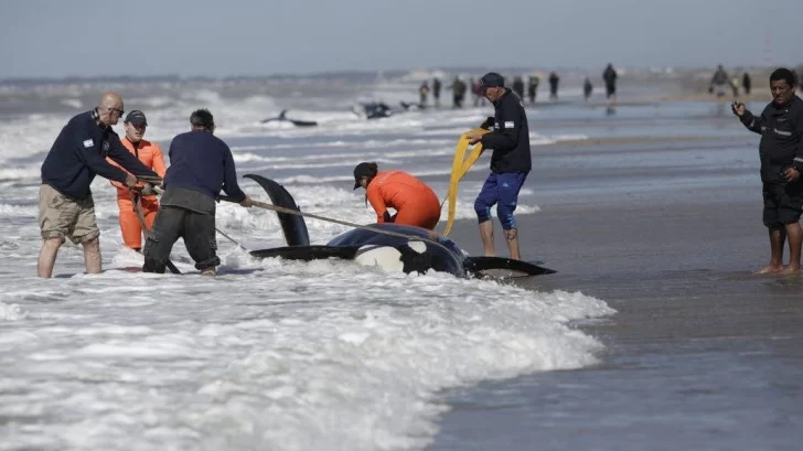Seis de las siete orcas que habían quedado varadas esta mañana en las costas de La Caleta lograron ser devueltas al mar y una falleció, luego de un intenso trabajo de rescate que Prefectura, Fauna Argentina, Guardaparques, Bomberos y personal Municipal de Mar Chiquita desplegaron en la zona.