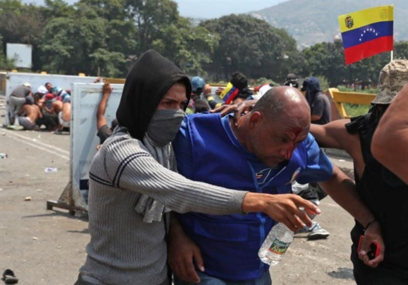 Soldados que son leales al gobierno de Maduro lanzaron gases lacrimógenos contra Guaidó y al menos una persona resultó herida, según la agencia de noticias EFE.