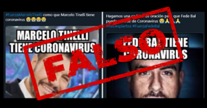 En Twitter, dos cuentas falsas afirmaron que ambos habían contraído el virus. El tema motivó más de 6 mil mensajes en la red. Los famosos desmintieron la desinformación en sus cuentas oficiales de Twitter, aunque el mensaje más compartido señalaba la tendencia sin aclarar la falsedad. El link más popular fue compartido por una cuenta falsa que simulaba ser del medio “Infobae”.