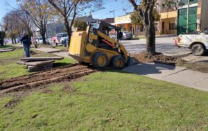 Comenzaron las tareas de para mejorar las condiciones de las plazas púbicas de la ciudad, trabajando actualmente en cada sector de la Plaza Isabel La Católica.