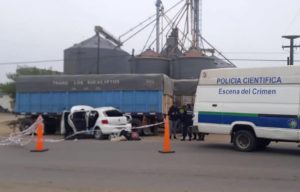 Un VW Gol Trend 5 puertas, que circulaba por un tramo de recta,se despistó y terminó impactando de manera lateral aunque fuertemente contra un acoplado que estaba estacionado a unos tres metros de la cinta asfáltica. El choque se produjo sobre un sector de banquina, frente a una planta de acopio de cereales.