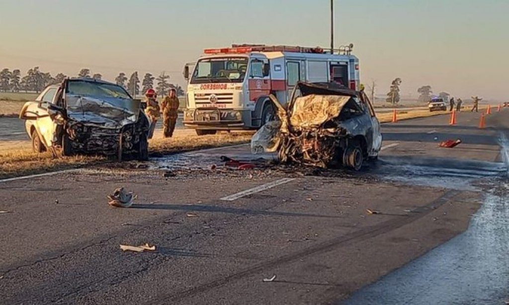 El trágico accidente ocurrió en la mañana de este domingo en el kilómetro 277 de la ruta nacional 34 en el departamento Castellano. Tras el impacto, los autos se incendiaron.