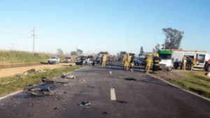 Cinco personas fallecieron tras protagonizar este domingo un violento choque frontal los vehículos en los que circulaban sobre la ruta nacional 34 , a la altura de la ciudad santafecina de Rafaela y, tras el impacto, ambos autos se incendiaron.