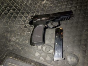 Una vez revisado el interior del rodado, se constató que transportaban una pistola 9 milímetros cargada con 17 municiones, la cual se secuestró en presencia de un testigo procediendo a la aprehensión únicamente del chofer por el delito de “Portación ilegal de arma de guerra”.