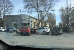 Una Renault Sandero que cruzaba la avenida por 63 chocó contra un Gol que se movilizaba en dirección a la avenida 75. Por motivos que se intentan establecer, también resultó impactada una moto cuyo conductor resultó lesionado en el siniestro.