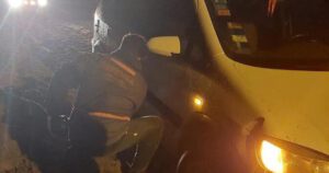A raíz de este infortunio, se informó a Defensa Civil de la situación y sus integrantes llevaron a cabo un operativo de rescate utilizando distintas herramientas de mano y, tras varios minutos, lograron desencajar el vehículo y así brindarle tranquilidad a sus ocupantes, que estaban muy angustiados por la situación.