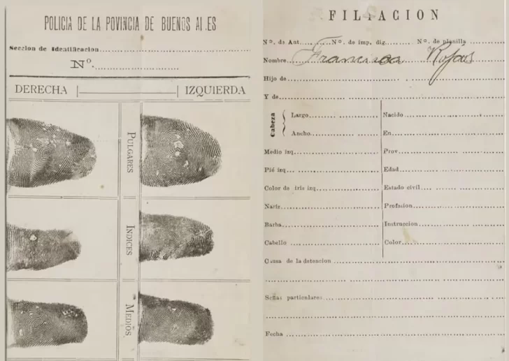 A Vucetich, que tenía treinta y tres años, le había caído en las manos, obsequio del ministro de Gobierno, Francisco Seguí, un ejemplar de la revista francesa “Revue Scientifique”, que reflejaba una investigación del británico Francis Galton sobre huellas digitales que había clasificado ciento un tipos de diseños diferentes de huellas. Vucetich redujo esos tipos a cuatro, creó los elementos necesarios para tomar los dibujos dactilares y empezó a poner el método en práctica. Quiso llamarlo “icnofalangométrico”, pero un buen amigo, que nunca faltan, le sugirió uno más claro y conciso: dactiloscópico. Era todavía flamante en 1892, cuando el inspector Álvarez le envió el pedazo de puerta y el marco de la ventana de la casa de Ponciano Caraballo y Francisca Rojas, ambos manchados de sangre y con huellas claras.