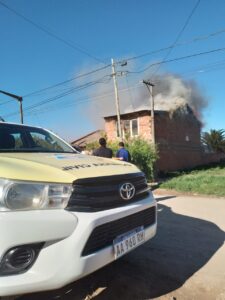 El cuartel de bomberos local tomó conocimiento de la novedad a través de personal Defensa Civil que circunstancialmente estaba próximo al lugar y de inmediato partieron dos autobombas. Las dotaciones de servidores públicos centraron su labor en dos habitaciones que habían sido alcanzadas por las llamas, logrando al cabo de varios minutos extinguir el fuego en su totalidad.