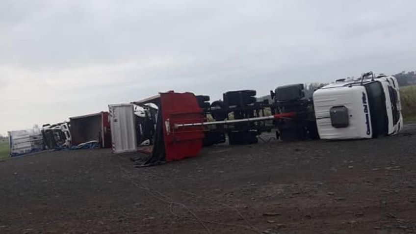 El tornado volcó 5 camiones que esperaban cargar y volteó varios postes de luz, generando grandes inconvenientes en la zona donde tuvo que actuar personal policial y de Bomberos.
