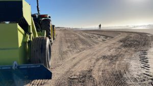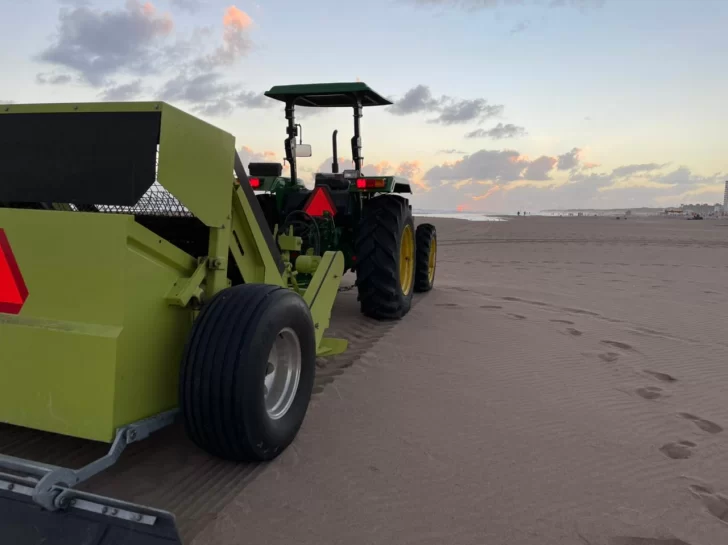 “Se trata de una máquina de arrastre, tirada por un tractor y tiene como unas púas que se introducen unos 15 centímetros dentro de la arena que van levantando y colando la arena para hacerle una limpieza fina”, especificó Ariel Rodríguez, director de Servicios Públicos.