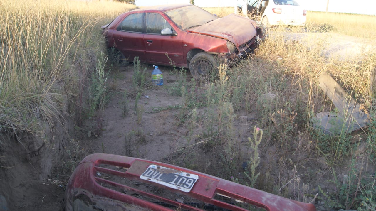 Por motivos que intentan establecerse, un automóvil Citroën Xsara, en el que viajaba una pareja con sus hijos menores, terminó volcado luego de despistarse y caer en la cuneta.