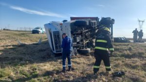 El siniestro fue protagonizado por un Fiat Siena y un camión Mercedez Benz conducido por Leandro Ezequiel Crocce, de 35 años, que producto del impacto volcó y quedó atravesado sobre la carretera.