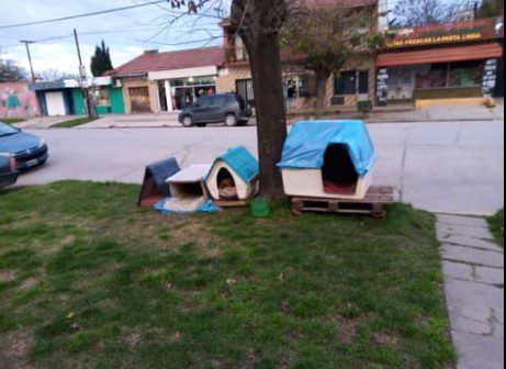 Se viene el frío y la vecina, que alimenta a varios perritos callejeros, no dudó en armarles su propio barrio en la entrada de su casa para que tengan donde pasar las noches de invierno.