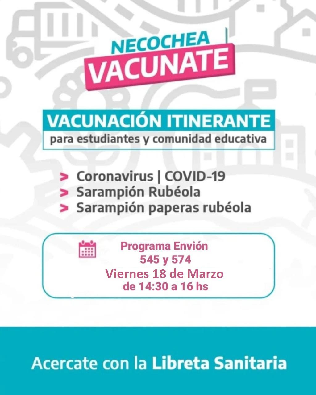 Hoy se llevará adelante una jornada de vacunación itinerante para estudiantes y la comunidad educativa en la sede del Envión en Quequén, en 545 y 574.