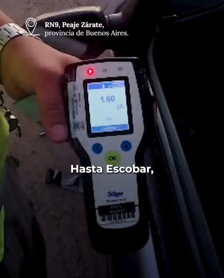 Uno marcó 1,60 g/l de alcohol en sangre. Cuando el agente le preguntó si había tomado, respondió: “Sí, algo sí”. El hombre iba rumbo a Escobar, más de 50 kilómetros del lugar donde lo detuvieron, y llevaba a menores en los asientos de atrás, sin cinturón.