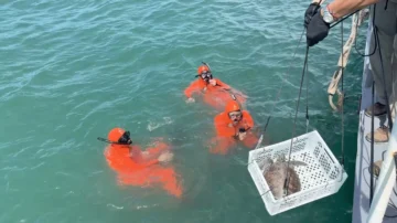 Al arribar al sitio indicado por los expertos, la tortuga fue bajada al mar en una bandeja plástica y en el agua era aguardada por tres nadadores de rescate de la PNA, que custodiaron que esta maniobra se realice sin riesgos para “Ramona”, tal como la bautizaron en su viaje a Mar del Plata quienes posibilitaron su recuperación.