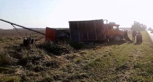 El chofer resultó ileso. Luego del accidente se pudo contar con un tractor y un sinfín, para poder recuperar la carga del maíz.