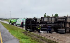 Un camión volcó este viernes por la mañana en la Ruta 88 y el conductor tuvo que ser rescatado por bomberos del interior del vehículo y trasladado de urgencia al Hospital Interzonal.