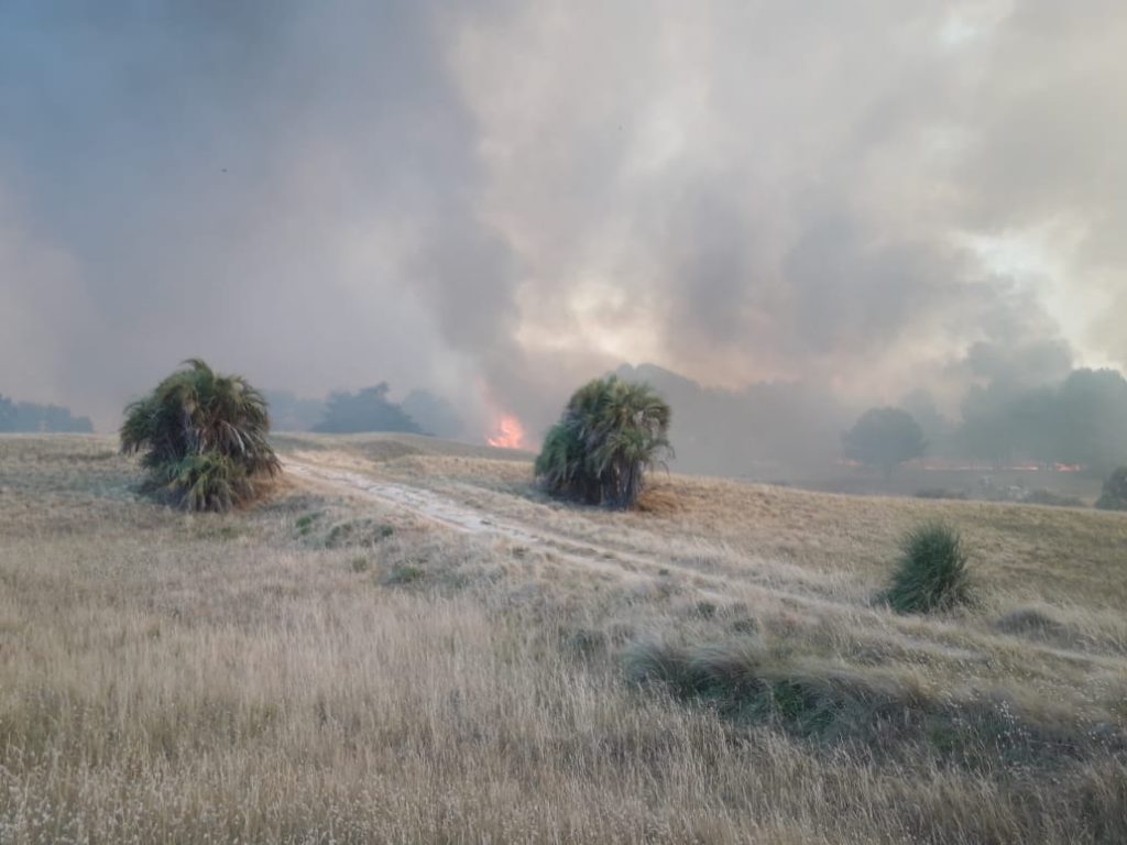 En el lugar trabajan varias dotaciones de bomberos que luchan contra el viento para evitar una mayor propagación de la llamas.