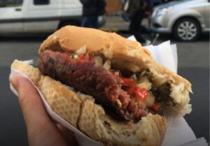 “Choripán es lo último en comida callejera argentina, un sándwich que consiste en una salchicha de chorizo y una variedad de condimentos en un panecillo crujiente. Suele consumirse al paso, ya que se vende mayoritariamente en puestos callejeros de toda América Latina”, explicó TasteAtlas en un artículo.