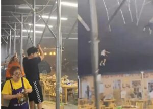 Al menos cuatro personas resultaron heridas cuando intentaban evitar la voladura del techo de un restaurante en la provincia china de Hubei.