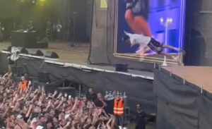 Cuando el fanático se lanzó hacia la multitud, el público se abrió camino y no lo atrapó, por lo que cayó de cabeza al piso. Así, algunos de los presentes lo ayudaron a incorporarse y afortudamente no sufrió lesiones graves, sino que siguió disfrutando del concierto.