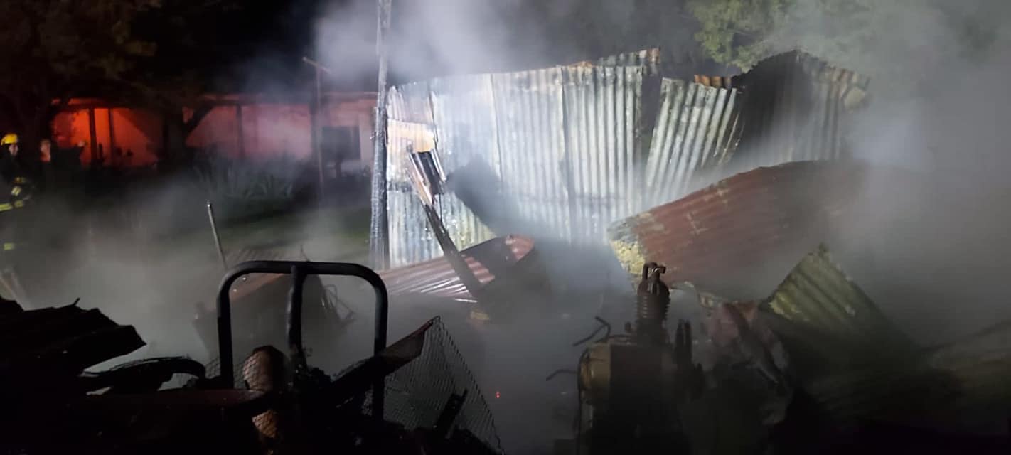 Un taller ubicado en el establecimiento Nuevo Sol, en la localidad de La Dulce quedó totalmente destruido por el fuego en la noche de este martes.