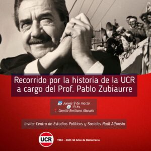 A 40 años de la Democracia, desde el Centro de Estudios Políticos y Sociales “Raúl Alfonsín” del Comité Emiliano Abásolo organizar una charla sobre la historia de la UCR.