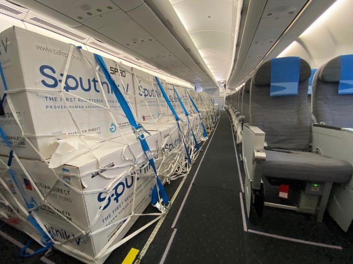 El primer cargamento desde Rusia llegó al país el 24 de diciembre de 2020, con 300.000 dosis. El segundo arribo fue el 16 de enero, y trajo la misma cantidad; el tercer envío de vacunas aterrizó en Ezeiza el 28 de enero, con 220.000 dosis de Sputnik V (si bien llegaron 240.000, 20.000 fueron destinadas a Bolivia). Y la cuarta entrega fue el 12 de febrero, otras 400.000 dosis
