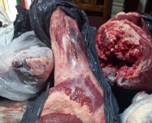 Secuestraron carne de vaca cortada en trozos, un arma de fuego y otros elementos relacionados.