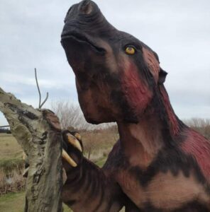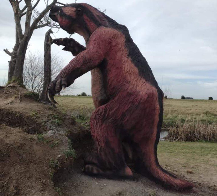 «El coloso muestra al fin toda su magnificecia», así anunció el Museo de Ciencias Naturales Gesué Noseda la finalización de una escultura en el Camino de sirga de Lobería.