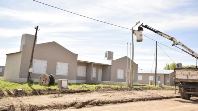Personal municipal de Lobería llevó adelante las tareas de instalación de nuevas luminarias en el barrio próximo a inaugurarse, de 26 viviendas para trabajadores municipales.