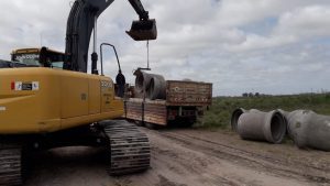 Actualmente, se están desarrollando tareas de alcantarillado en el camino cercano al establecimiento rural “La Chiripa”, utilizando para ello tubos de hormigón producidos en Lobería por la Cooperativa La Esperanza.