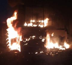 Por motivos que todavía son materia de investigación una cosechadora fue consumida totalmente por el fuego en la zona rural del distrito de Lobería.