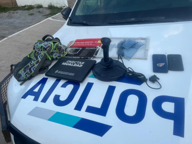Al arribar rápidamente al lugar, el personal policial identificó a un individuo con características coincidentes. Sin embargo, al intentar identificarlo, el sujeto reaccionó de forma agresiva y se trenzó en lucha con uno de los efectivos, siendo finalmente reducido y aprehendido. Entre sus pertenencias, los uniformados hallaron una notebook del programa Conectar Igualdad, dos teléfonos celulares, un joystick y un protector de pantalla dañado, elementos cuya procedencia no pudo justificar.