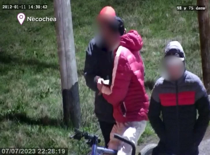 Las imágenes registradas por las cámaras municipales captan el momento en que dos personas se acercan en bicicletas hasta una esquina ubicada frente al barrio, donde se efectúa una operación de intercambio con otro masculino a cambio de dinero.
